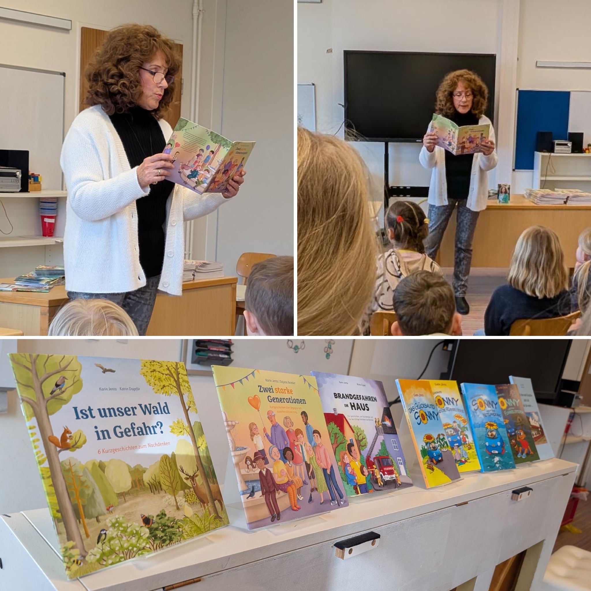 Die Kinderbuchautorin Karin Jenta hat uns besucht und aus dem Buch „Zwei starke Generationen“ vorgelesen. Die Kinder haben aufmerksam zugehört, Fragen gestellt, und waren begeistert. Die Erwin-Roeske-Stiftung spendete den Kindern der ersten und zweiten Klasse je ein Buch. Vielen Dank!